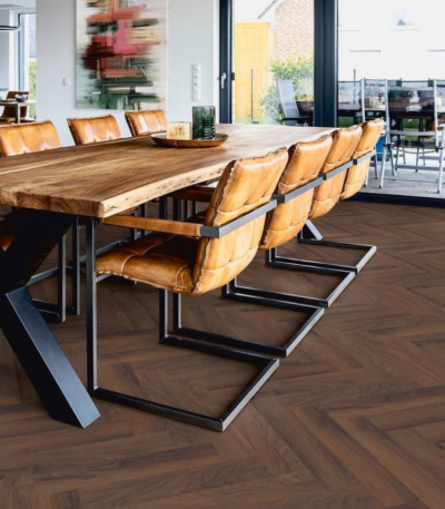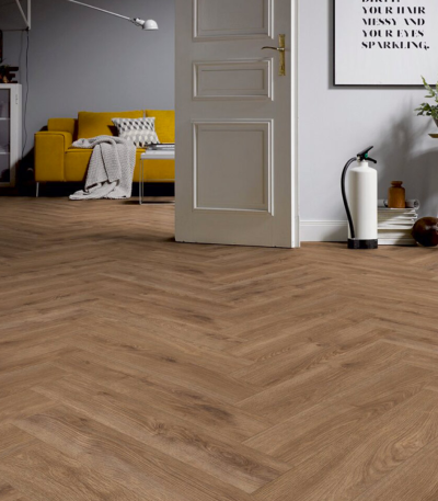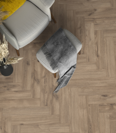 Parketi Egger Herringbone Eiche Cottage sjell një pamje të ngrohtë dhe moderne për çdo ambient.