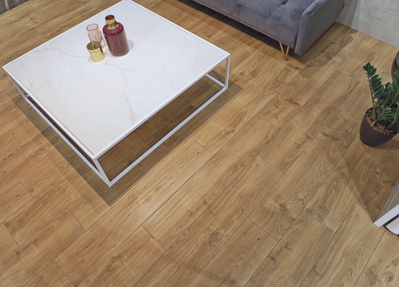 -Modeli Illinois Roble kombinon estetikën e parketit me qëndrueshmërinë dhe lehtësinë e mirëmbajtjes që ofron pllaka qeramike.